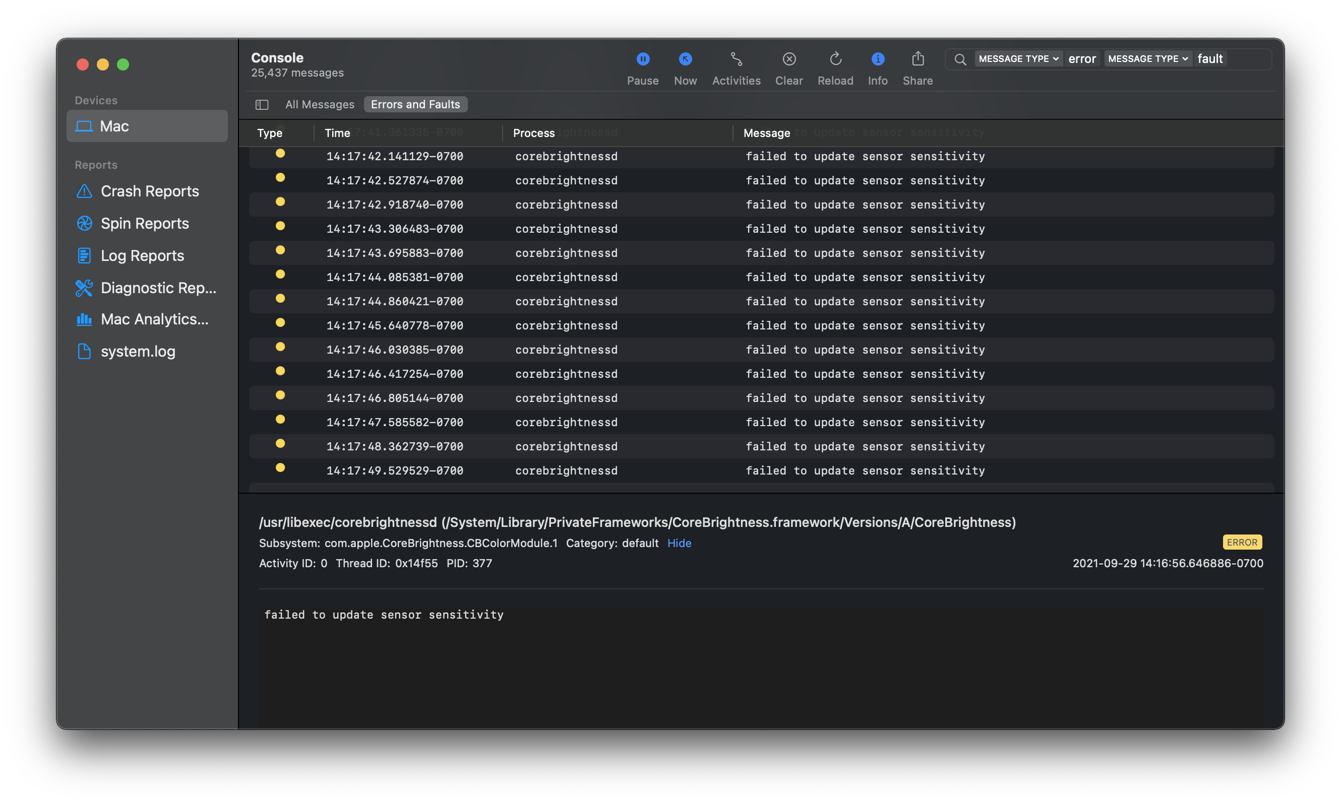 I ran into an issue where the corebrightnessd process was slamming my Apple Silicon MacBook Air non-stop to the point where the device would crash within a few minutes after logging in unless I repeatedly force quit it. I spent the better part of my day trying to solve the issue and the culprit ended up being the latest beta release of Monterey (Build 21A5534d) containing a keyboard brightness bug. So for the time being I have to leave ‘adjust keyboard brightness in low light’ enabled until a fix is released. So if you happen to run into this and are being driven mad trying to figure out the solution…here you are. 🤓👍🏻💻